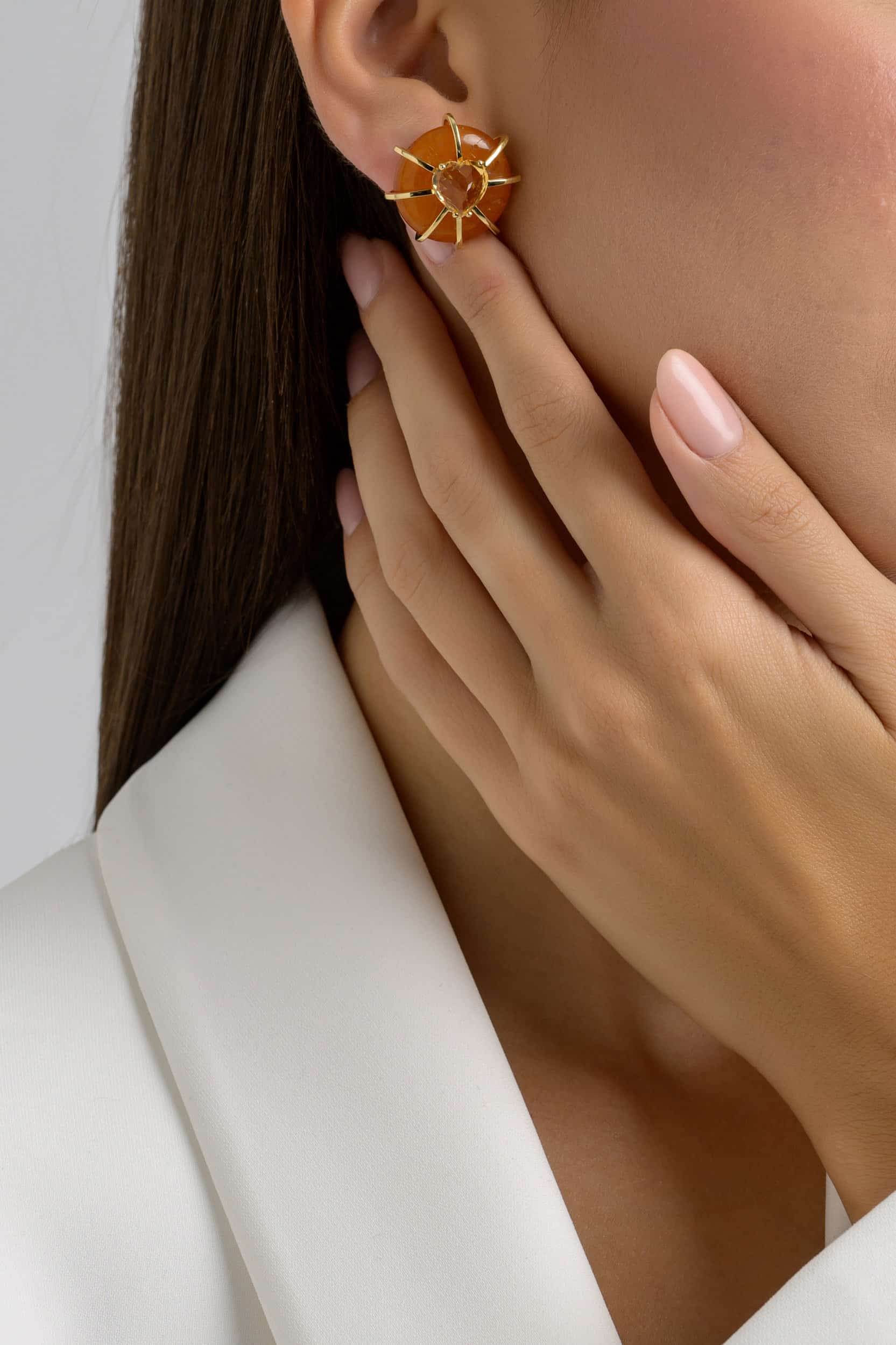 Delicate golden accents and elegant heart-shaped citrine stones enhance their natural beauty, adding a touch of warmth and sophistication to the design.