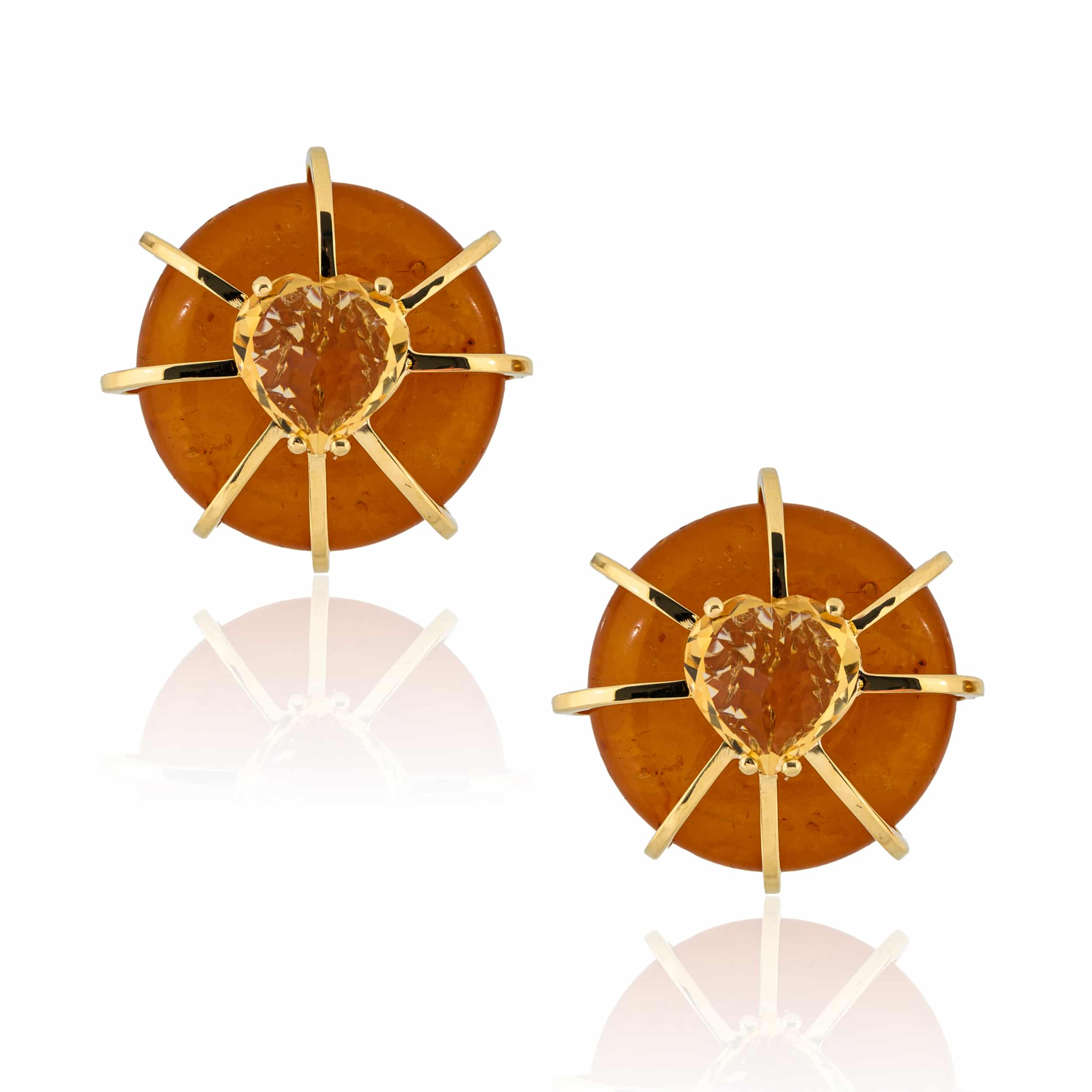 Crafted from 18K gold, these exquisite earrings feature luminous amber, glowing with rich, honeyed tones.