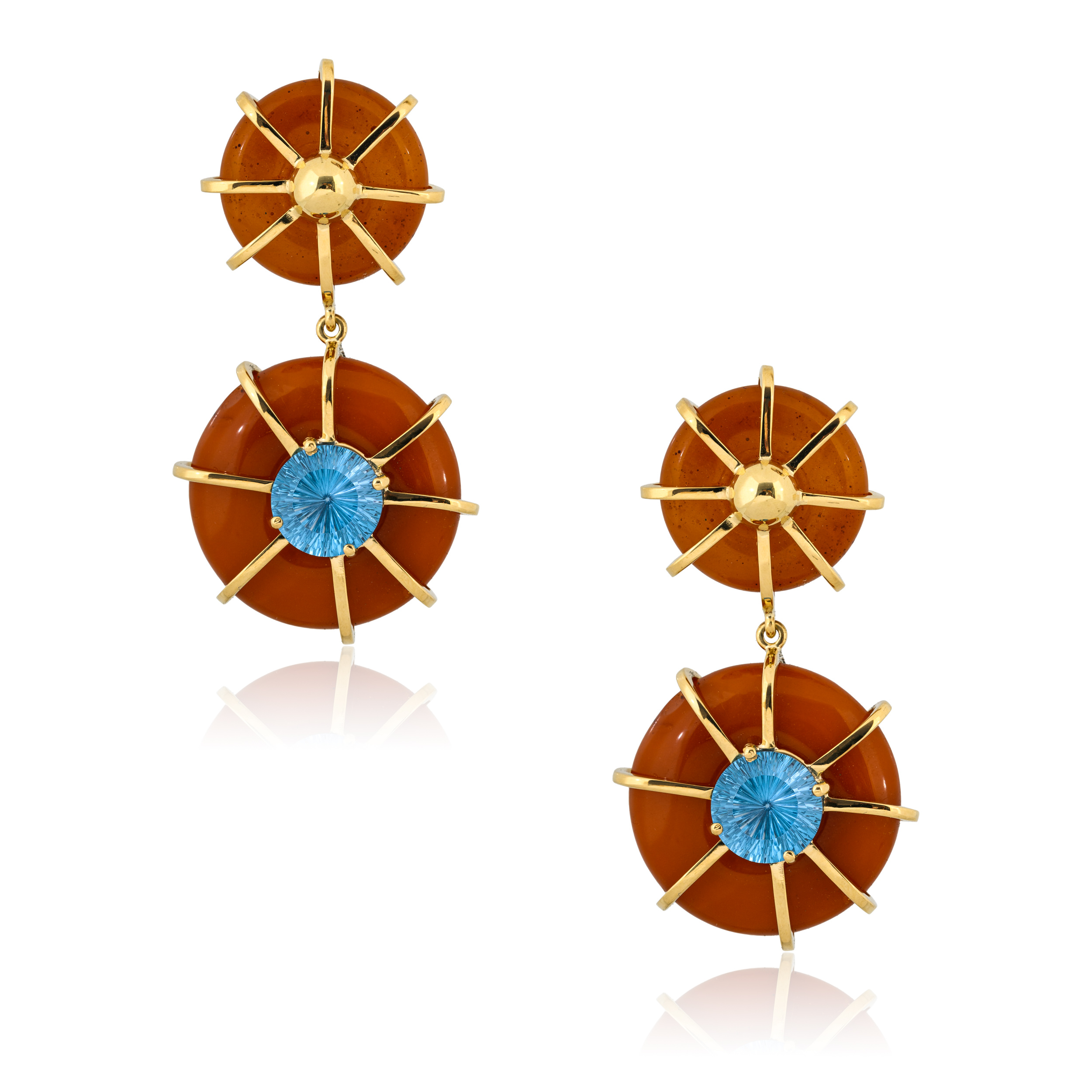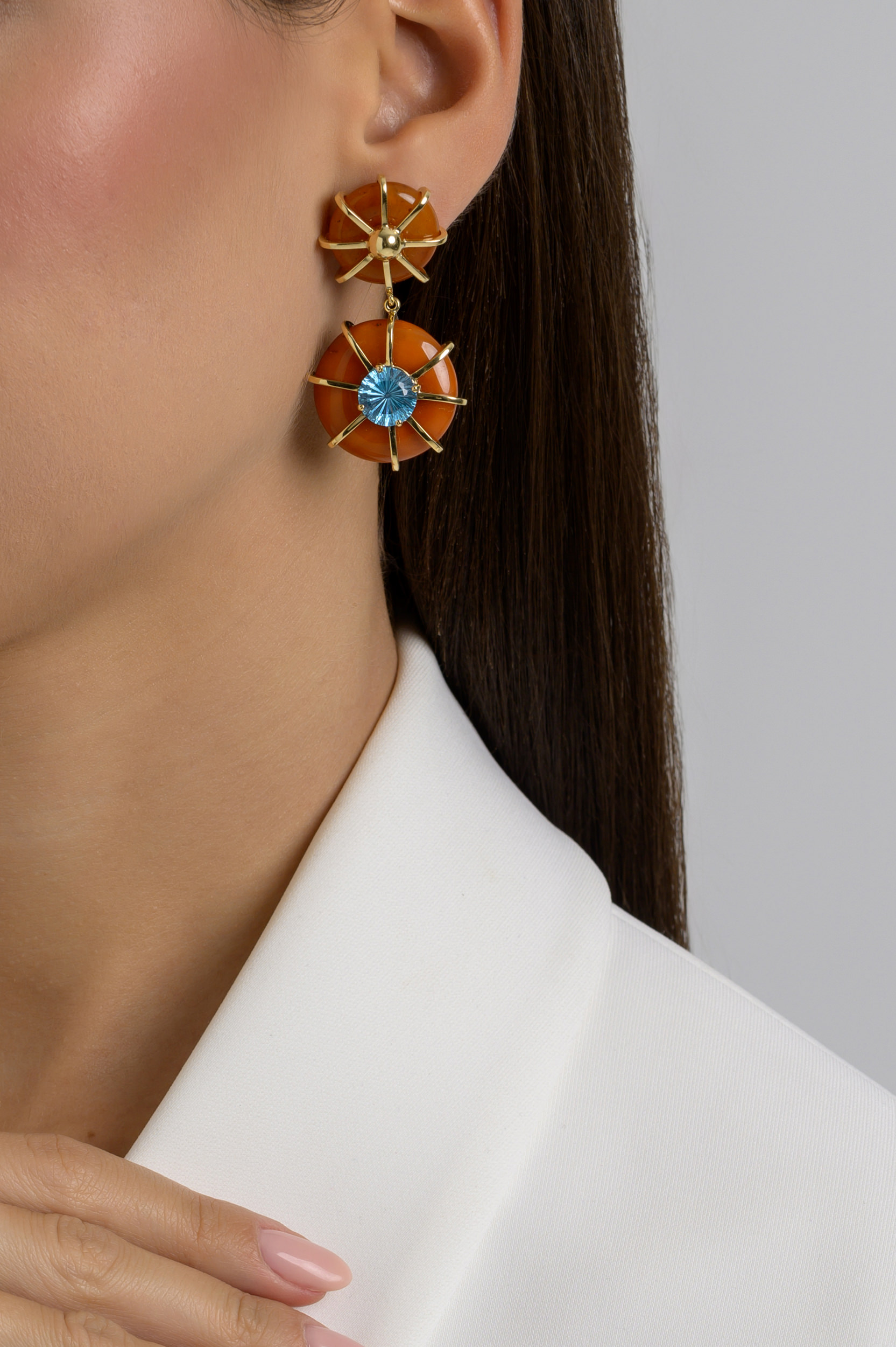 Crafted from 18K gold, these exquisite earrings feature luminous amber, glowing with rich, honeyed tones.