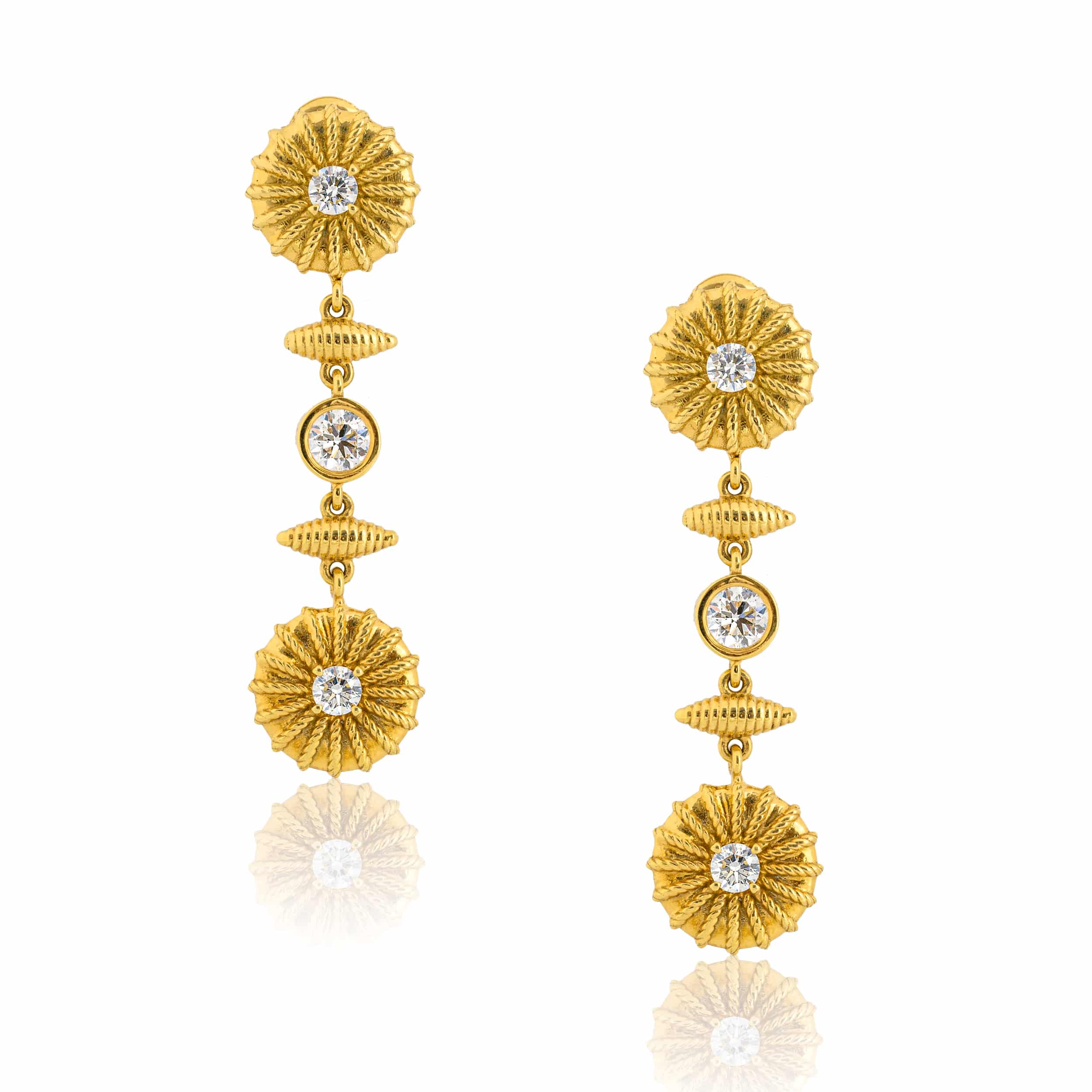 The harmonious blend of 18K yellow gold, diamonds and sea-inspired designs, creates a stunning pair of earrings that exude elegance with a touch of ocean’s natural beauty.