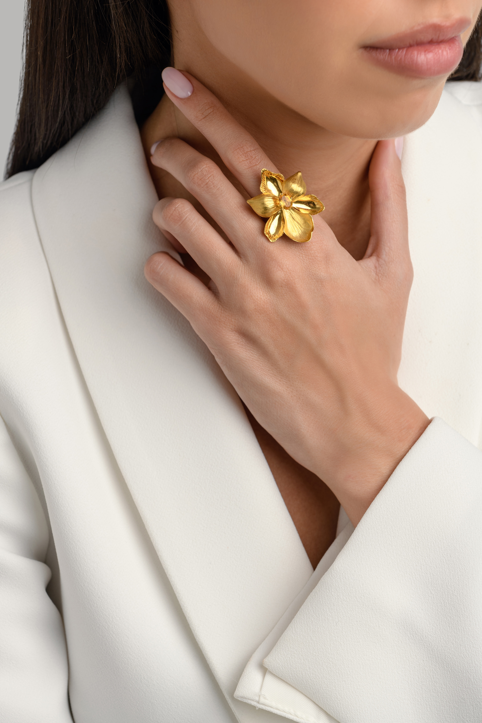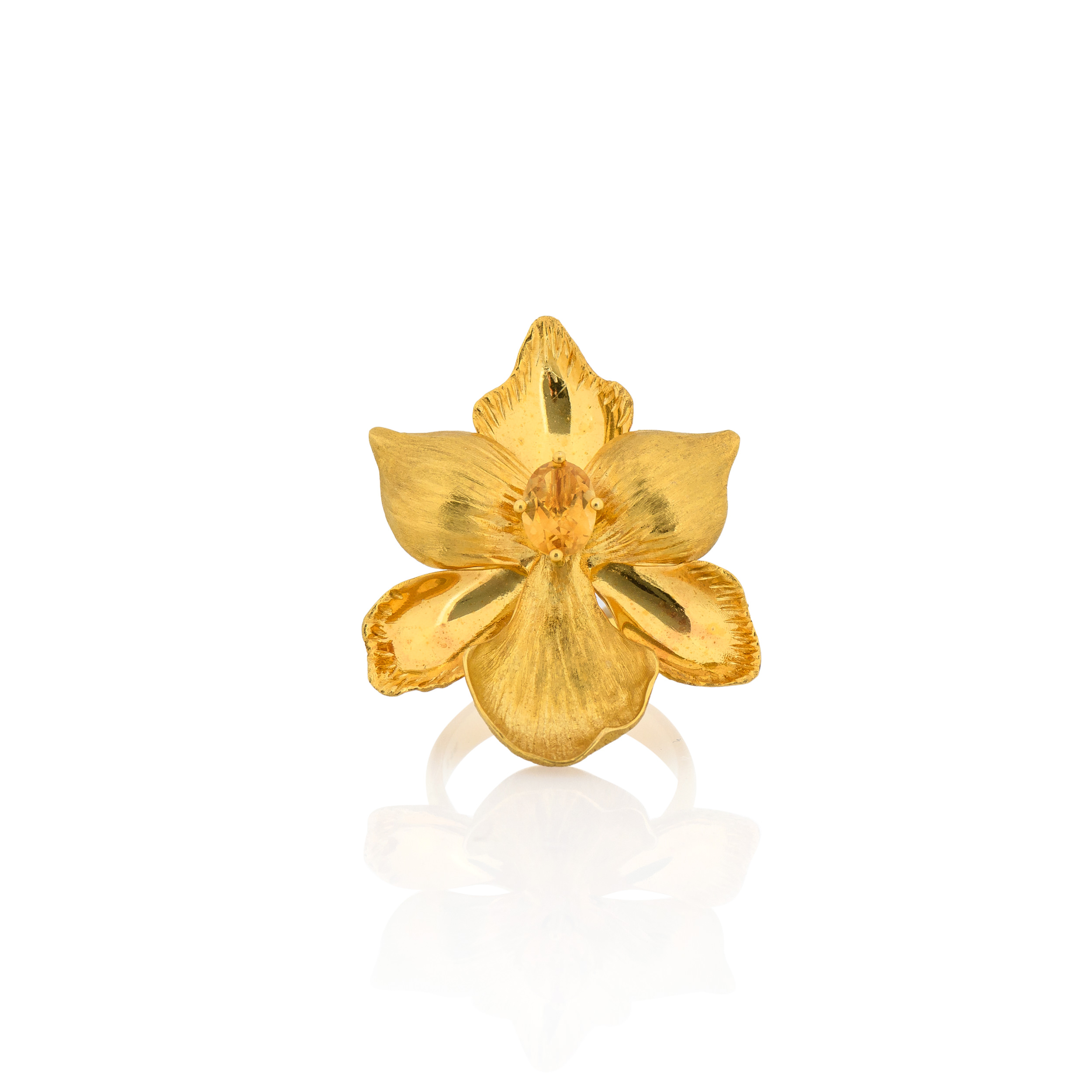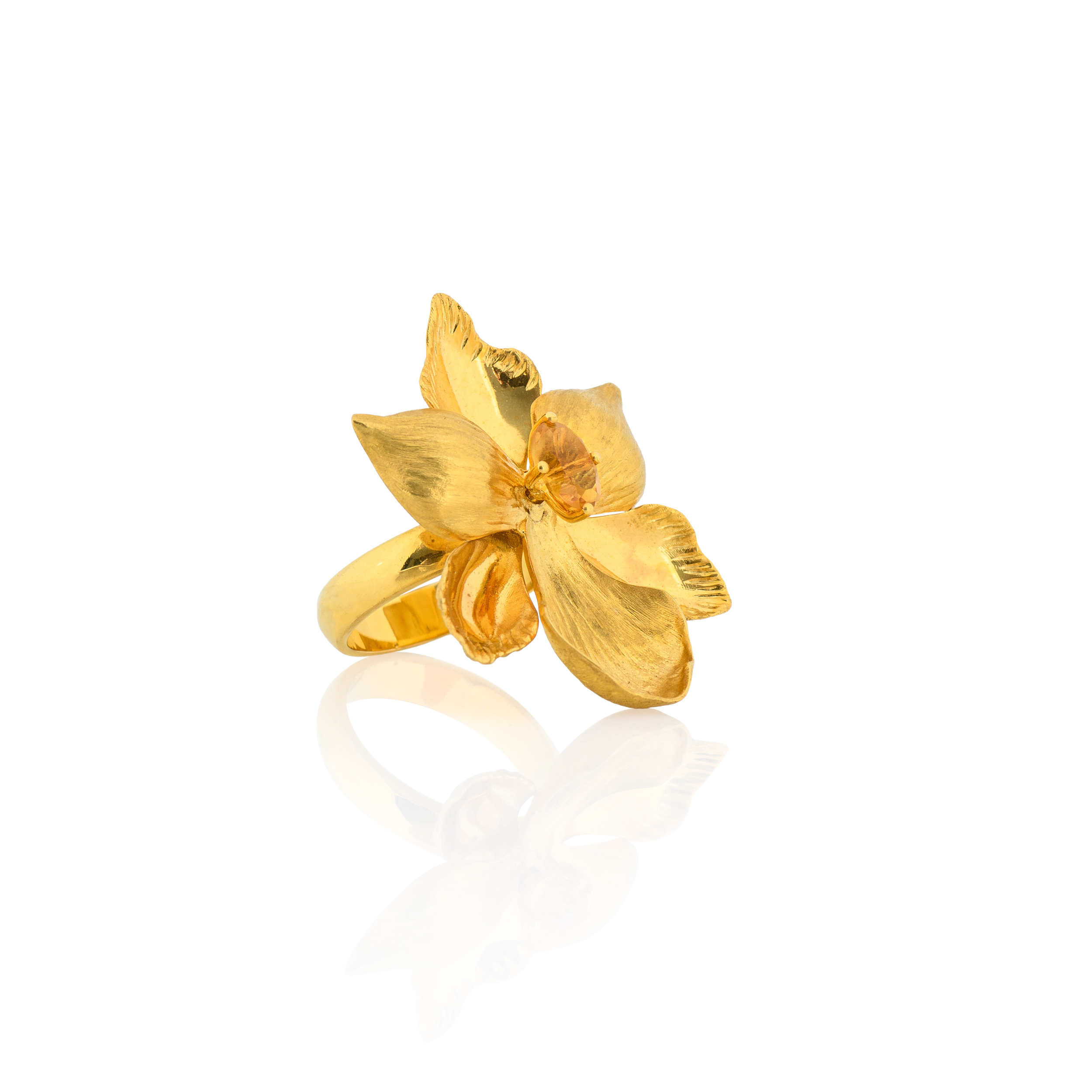 This Golden Dahlia Bouquet Ring is made of 9K yellow gold and citrine. Add a blooming touch to your attire and stand out.