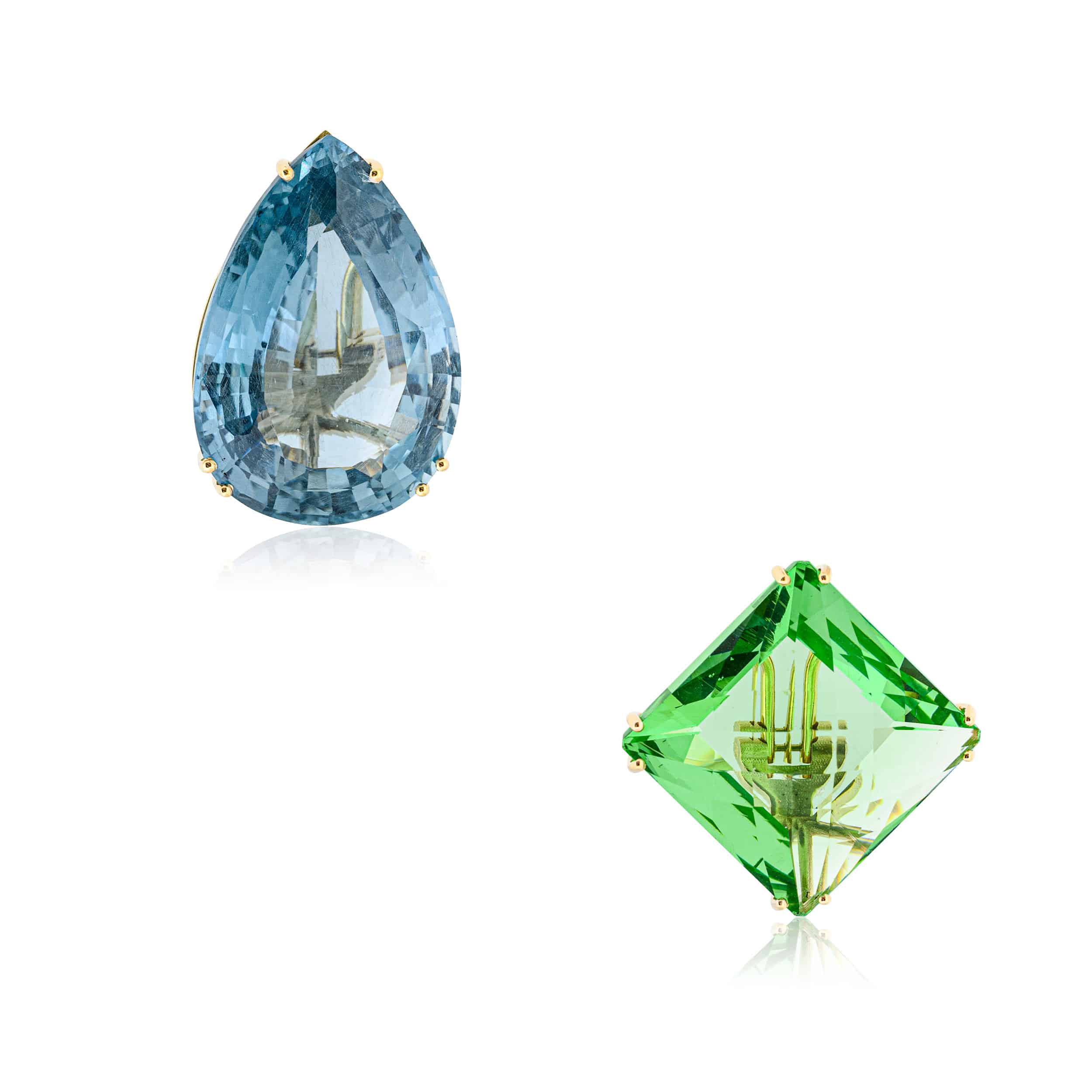 Oh Look! A vivid duet of translucent stud earrings, featuring luminous semi-precious stones set on 14K gold with 18K gold backs.