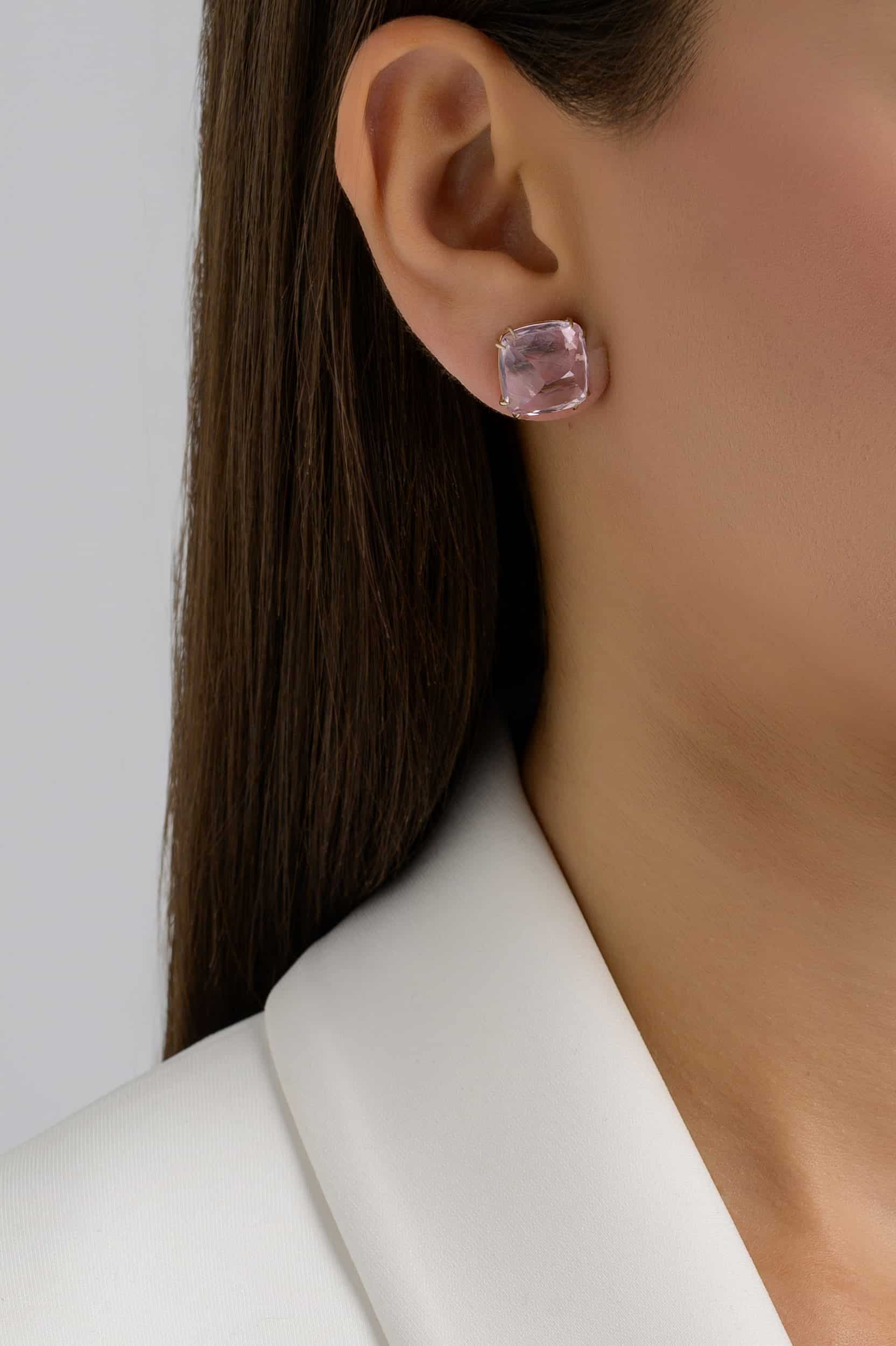 Oh Look! A vivid duet of translucent tourmaline and kunzite stud earrings in 18K gold.